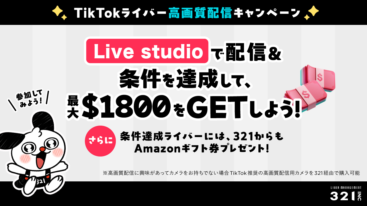 TikTokがTikTokLIVEstudioを使用して高画質配信をし、条件達成すると最大$1800プレゼントキャンペーンを行っています!