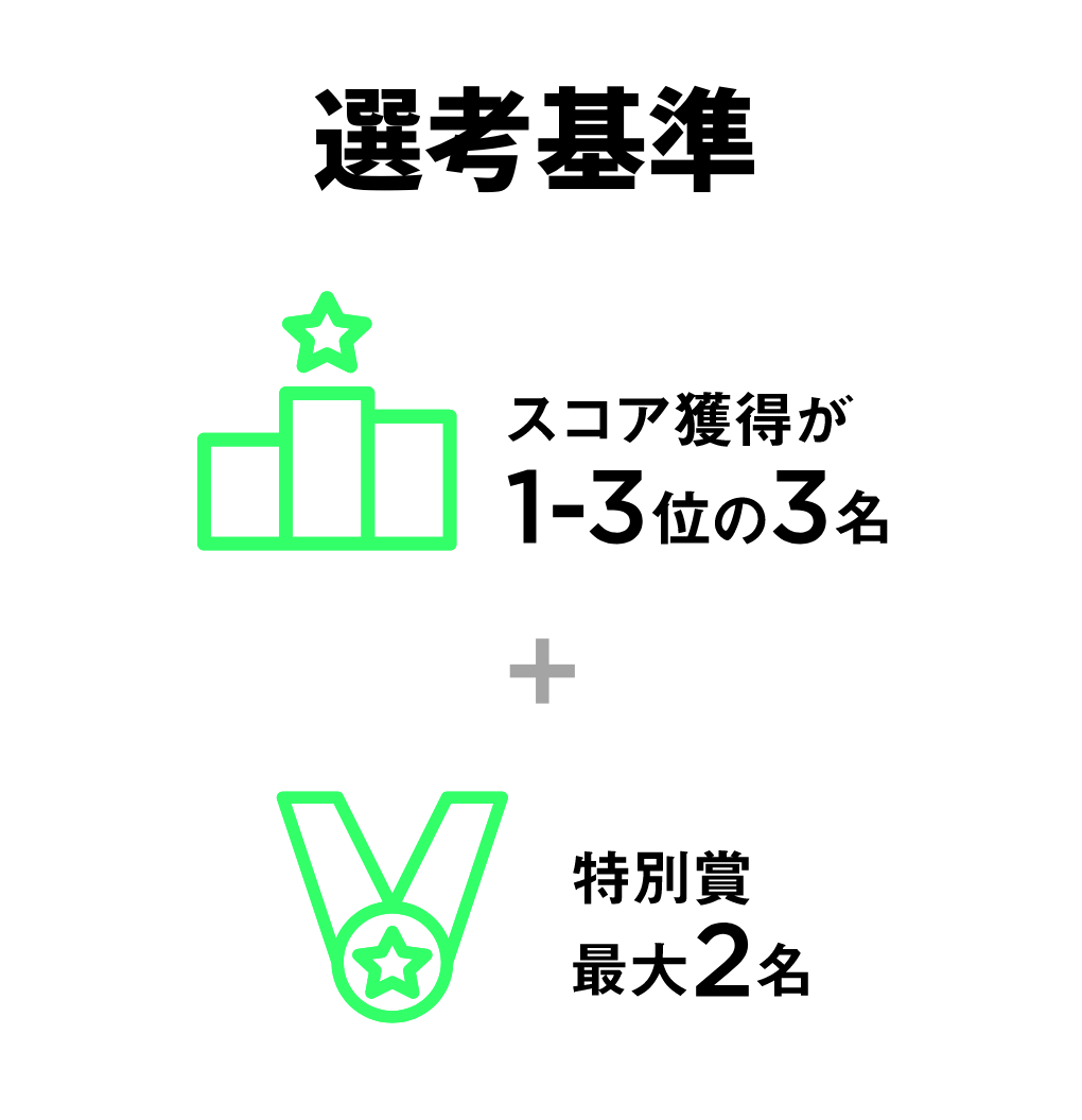 ・特別賞とは、一定の配信を行っている方で、獲得スコア以外の点で活躍している方に、与えられるものになります。なお、特別賞の受賞者は、いない場合もございます。