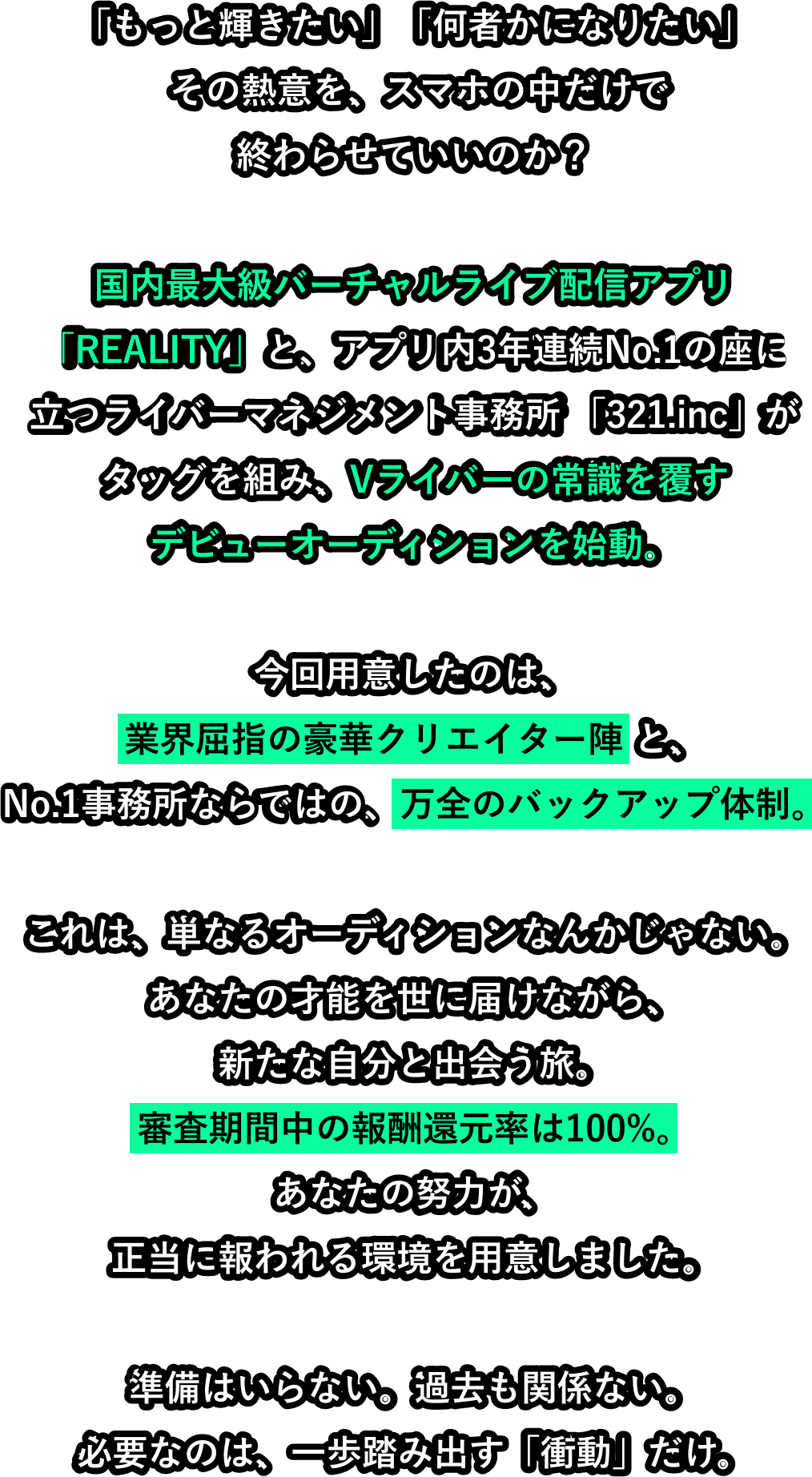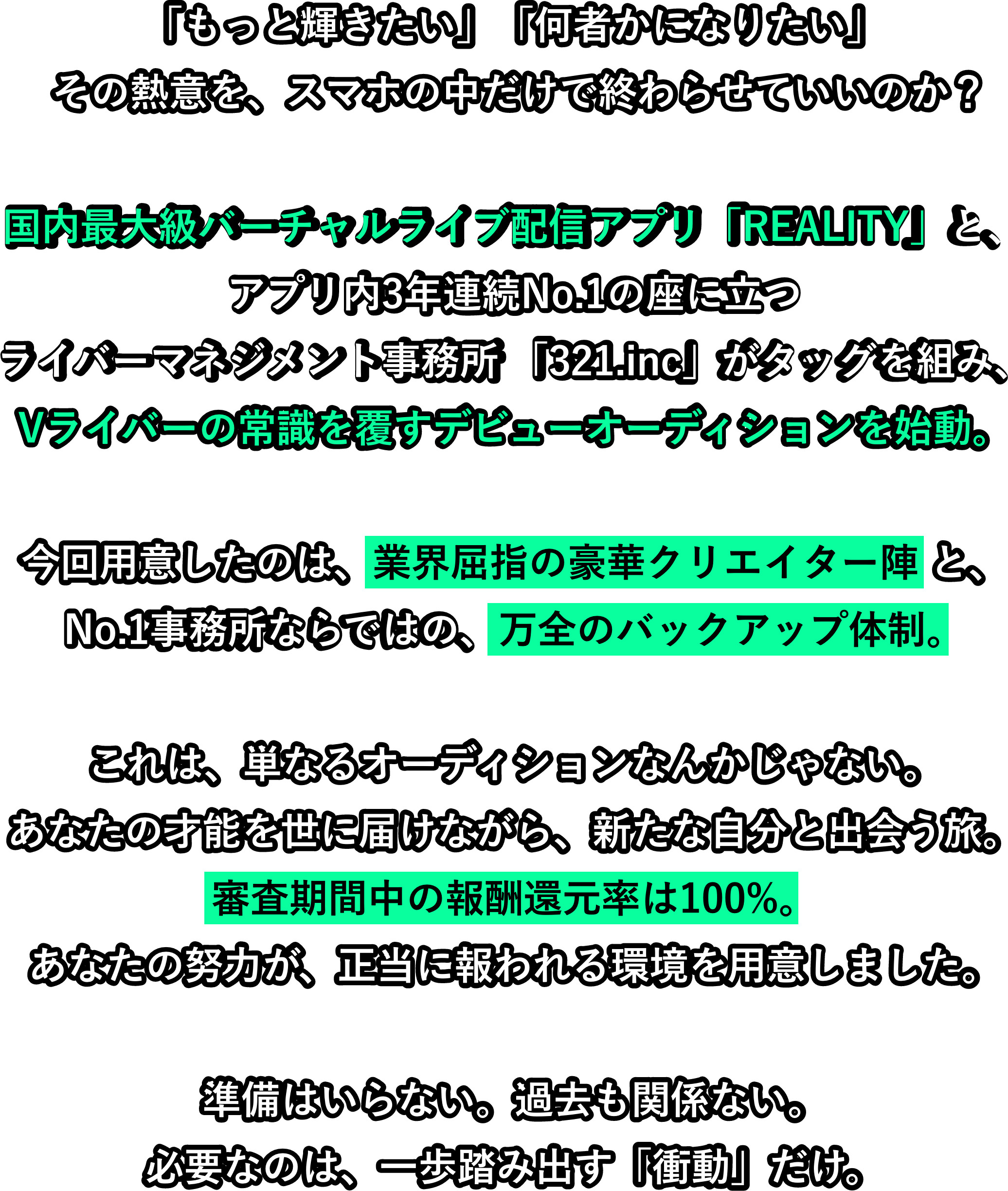 ・REALITYの配信にて獲得した収益は100%還元いたします。